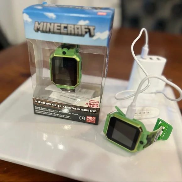 Minecraft interactive watch with a green band.