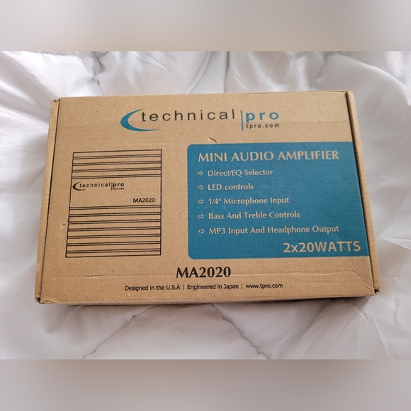 Upgrade your car's audio system with the Mini Audio Amplifier. This sleek blue amplifier features a direct EQ selector, LED controls, and versatile input options for enhanced sound quality.