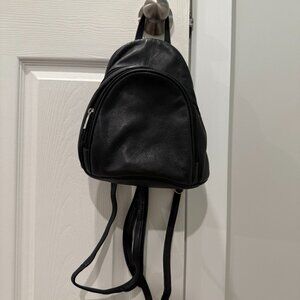 Thrifted this black leather bag, lots of room and the straps can either be in backpack mode or crossbody.