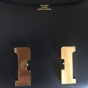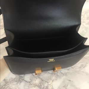 Hermes black Mini Constance 18cm in evercalf leather with gold hardware . Super classic! Comes with original dust bag, original box, felt, carebook, and original ribbon. Authentic as well. Purchased at boutique store in the U.S. Size: 18cm 7.25" width x 6.25" height x 2.24" depth; 16.5" adjustable shoulder strap Origin: France