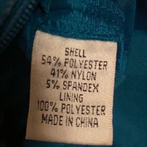 54% polyester 41% Nylon 5% Spandex