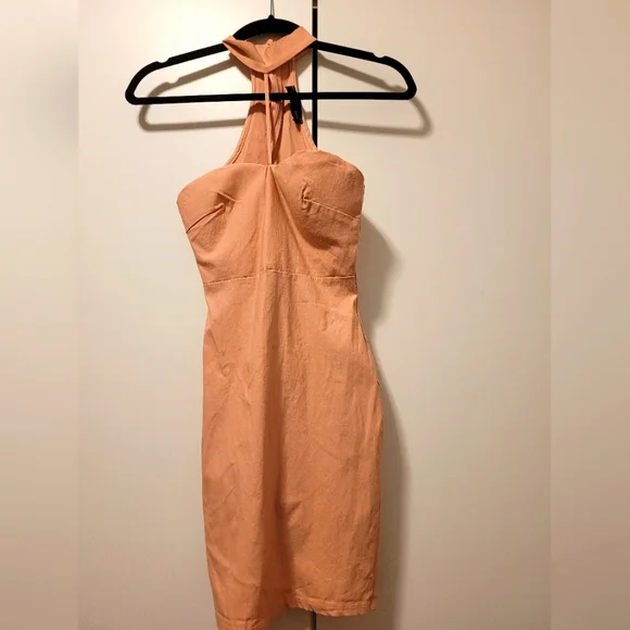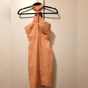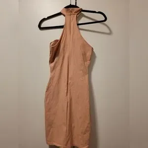 Mini salmon colored dress. Perfect for clubbing or a night out. Small stain as shown in the video. Lightly worn.