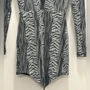 Brand new with tags. Never worn dress. Black and silver colour with sprinkles. Low cut, open front. Size: Medium