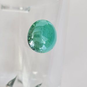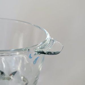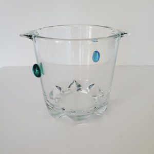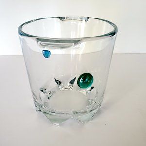 Thick clear glass mini ice bucket with glass pebble appliques in blue & green for design accent