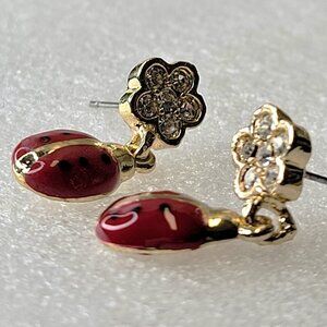 Mini LadyBug Enamel Crystal Earrings