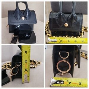 Stylish and on trend ..the mini bag purse charm can hold lipstick and mirror. / 2 hooks to ADD a chain to bag ( not included ) or hook for keys.