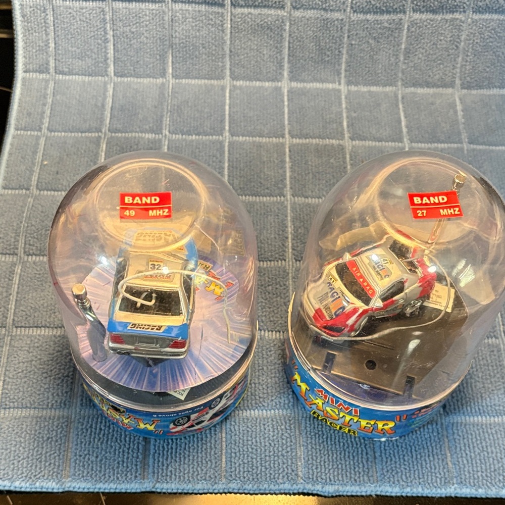 Experience thrilling races with this set of mini remote control cars in striking blue and red. Perfect for young racing enthusiasts, these cars promise endless fun and excitement.Separate channels for head to head racing . Hard to find . Minor damage to one dome and one stand is missing . See pictures