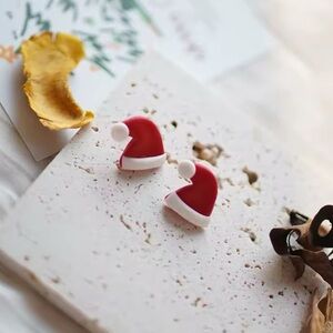 Mini Santa Hat Stud - Handmade Earrings - Red & White