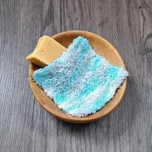 A handy little scrubbing cloth. Made with textured yarn to get at those stubborn spots. Makes a great exfoliating cloth for your body too.