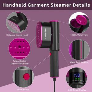 [UNIQUE DESIGN]: Equipped with an LCD smart display showing real-time temperature changes. The steam panel rotates 90 degrees for horizontal and vertical ironing. Includes a 100ml water tank.