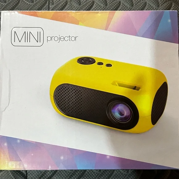 Compact and portable mini projector in vibrant yellow. Perfect for on-the-go entertainment.
