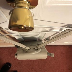 Light grey leather David Jones Paris mini backpack.