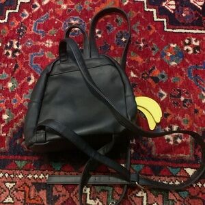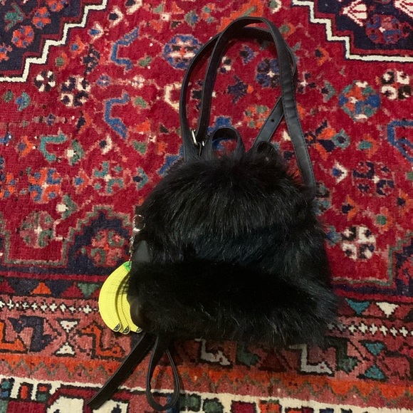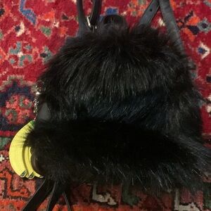 Mini black backpack. The front of the bag is fury like thick straight hair.