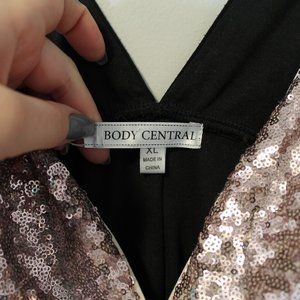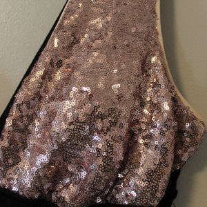 Mini cocktail dress with light pink / rose gold sequence flattering pleats in skirt.