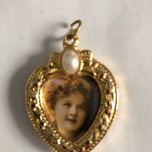 Mini heart shaped picture frame pendent gold tone metal made in Taiwan 3cm x4cm