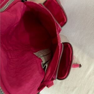 Pink mini kipling backpack, it comes with matching pink monkey kipling keychain.