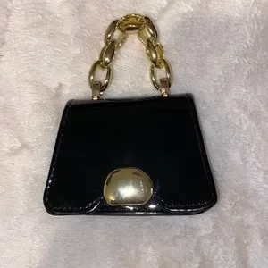 Mini purse with crossbody strap. It is small but can fit small things like a chapstick, air pods, and cards and cash.
