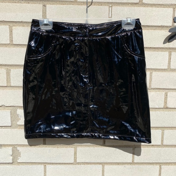 Lined micro-fleece faux leather mini skirt. Worn a few times, good condition. Material 100% polyurethane.