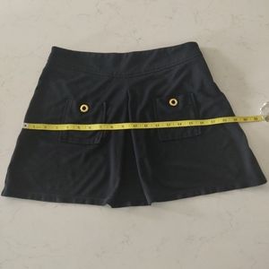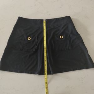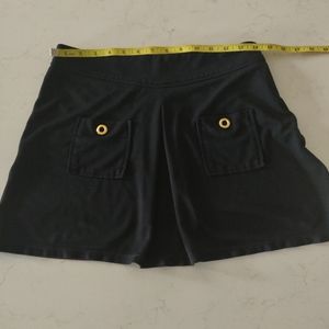 This flirt skirt can be effortlessly dressed up or down, thanks to its flattering silhouette. Front pockets with gold rivets details.. Side zipper. Light jersey fabric.