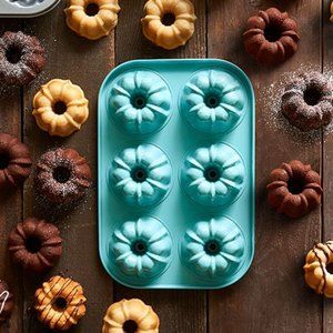 PAMPERED CHEF Mini-Fluted Bundt Pan. Non-stick, Quality Bakeware in Aqua Blue