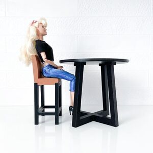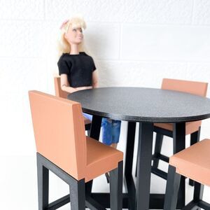 Miniature Barbie Bistro Black Table 4 Chairs 3D Printed Dollhouse Furniture