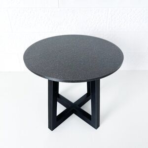 Black Bistro Table with black granite-look top and 4 Cedar-look/black Chairs. Handmade by 3d printing. See other listings for other colors.