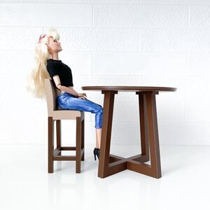 Miniature Barbie Bistro Brown Table 4 Chairs 3D Printed Dollhouse Furniture