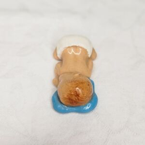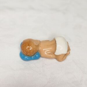 Miniature Ceramic Porcelain sleeping Baby Boy with Red hair and Blue pillow, by Hagen- Renaker Pottery Inc.