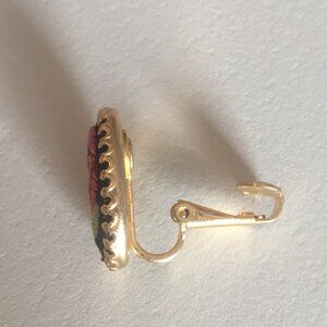 Vintage inspired ,miniature framed needlepoint clip on earrings with gold tone hardware.