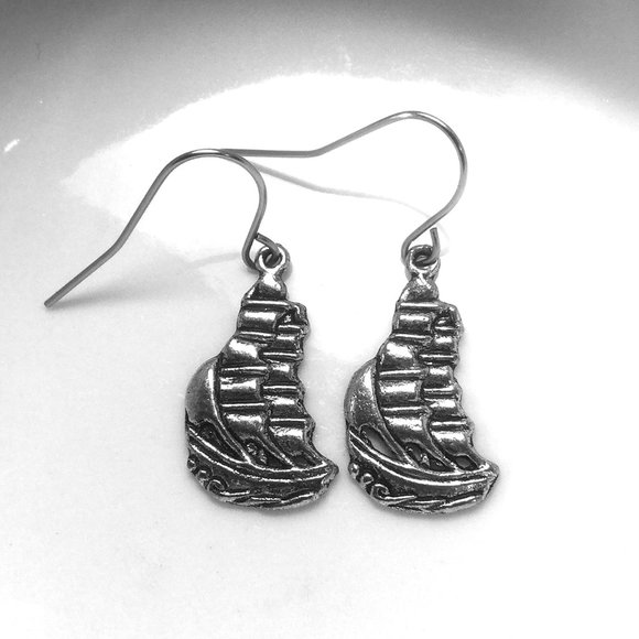 Miniature Galleon Ship Pirate Ship Ocean Sea Boat Gift Charm Earrings