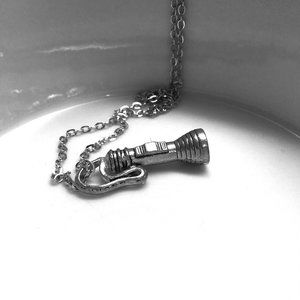 Miniature Pewter Flashlight Torch Light Camping Hiking Flash Light Gift Necklace