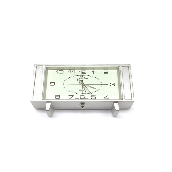 Miniature Silver Mini Retro TV style clock, QUARTZ Japan Movement, La Brea, New