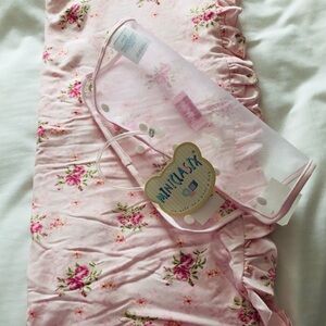 Miniclasix Pink Floral Ruffled Double Layer Swaddle Receiving Blanket in Case🆕