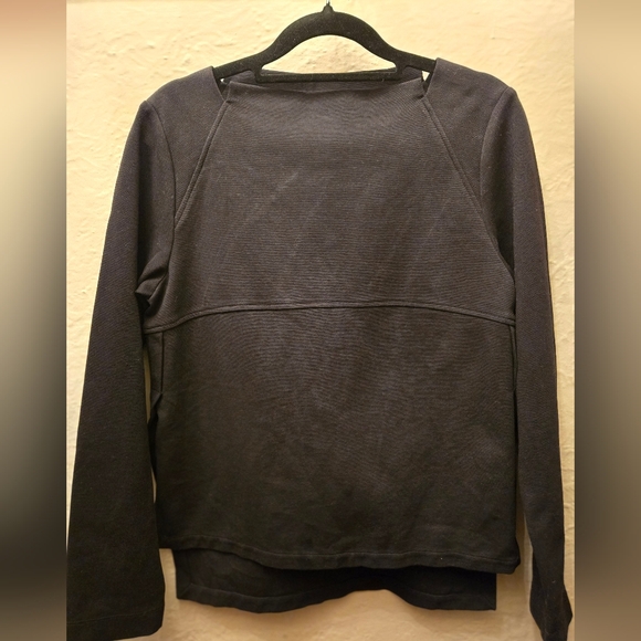Mylène B minimalist black pullover featuring a structured silhouette, clean seam detailing. Elevated basics energy—perfect for capsule wardrobes and understated styling.