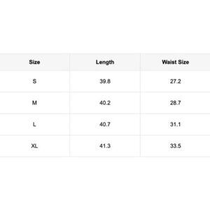Hip S - 36" M - 37" L - 39" XL - 41.5"