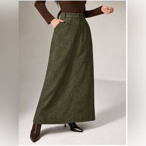 Minimalist Corduroy Skirt Maxi Green
