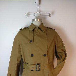 Minimalist Double Breasted belted Long Trench Coat with pockets 38R UnLined, new