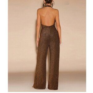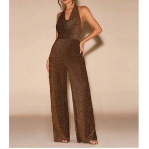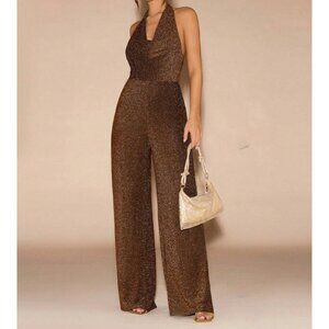 Minimalist Metallic Draped Neck Wide Leg Jumpsuit