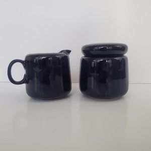 Minimalist Modernist Cream & Sugar server set Glossy Dark Navy Blue Sleek