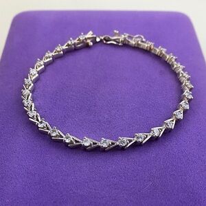 💛 Minimalist Sterling Silver Chevron CZ Tennis Bracelet
