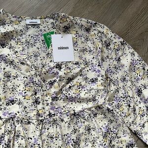Never worn, NWT. Lovely floral print, purple and yellow pops. Cute babydoll style with puffy sleeves.