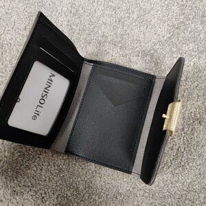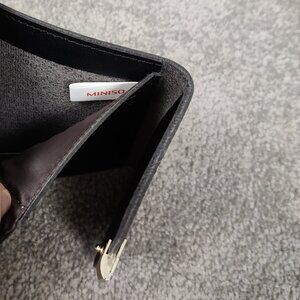 Miniso Life Women's Tri Fold Wallet Black Snap Button Closure Elegant Minimalist