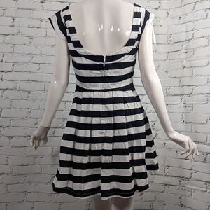 Mink Pink black and white stripe dress pleated skirt pockets low back size small
