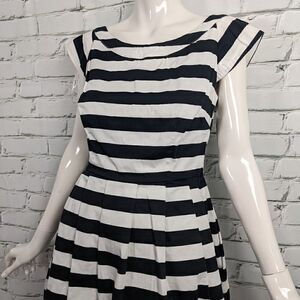 Mink Pink black and white stripe dress pleated skirt pockets low back size small