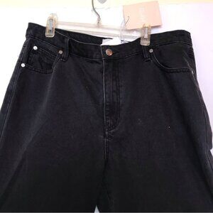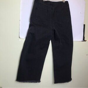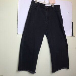 MinkPink MPD Tag NEW Wide Leg High Waist Raw Hem Jeans Crop Black Pants Boho L