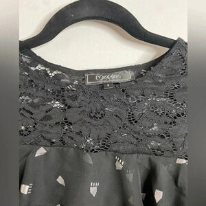 Minkas - Black ruffle blouse with silver details - small Lace details