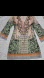Crafted from a lightweight, sheer 100% polyester chiffon-like fabric, this dress features a vibrant and intricate mix of paisley, floral, and geometric prints in shades of sage green, orange, black, and white.