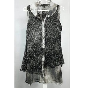 Like new. Sleeveless tunic blouse with asymmetrical lace overlay.