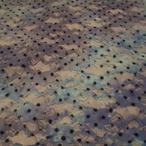 High neck blue sundress with polka dots. Waist to bottom of skirt 17". Neck to waistline 10.5". Zipper at back. Stretchy.