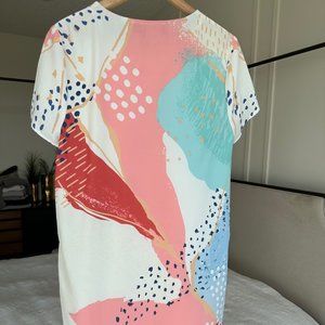 Super comfy and gorgeous abstract design! Size medium. Easy to throw on for any sort of event with a neutral shoe. Wore this once for a birthday party - like new!